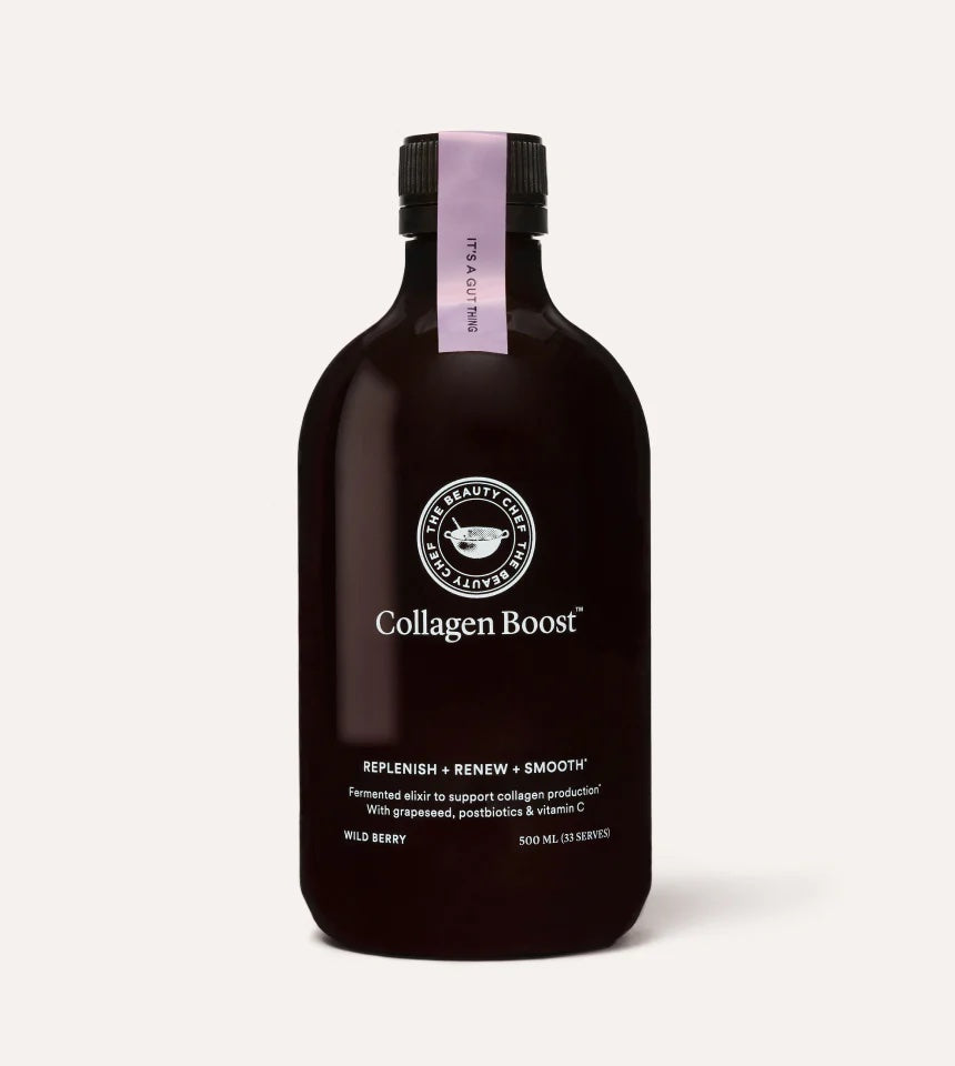 COLLAGEN contains a super-charged, concentrated blend of Certified Organic maqui berry, acai, papaya, blueberry, goji berry and pomegranate powders with grape seed extract, zinc and vitamin C. The potency of these skin-loving wholefood ingredients has been enhanced by The Beauty Chef’s exclusive Flora Culture™ fermentation process, making the nutrients more bio-available and better absorbed by your body’s cells. COLLAGEN is also rich in natural prebiotics and probiotics to balance your digestive tract and enhance your skin’s radiance.