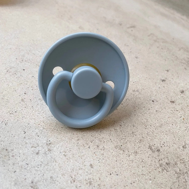 Made from natural latex, these pacifiers has been thoughtfully designed for your baby's comfort. The outward curve keeps the pacifier off their delicate skin, while features like air holes and a security handle ensure your baby stays safe. Available in 4 different soft colors.