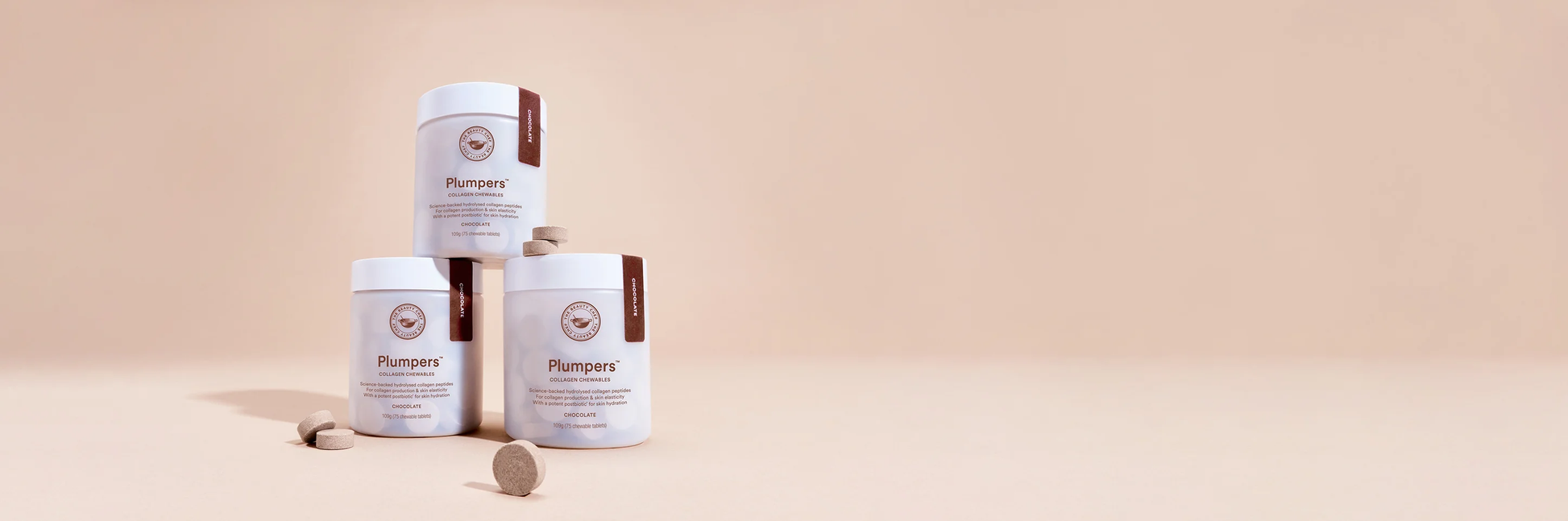 POP. CHEW. PLUMP. Chew your way to sought-after skin with our healthy, on-the-go and blissfully delicious Plumpers™ in Chocolate. Support collagen production, skin elasticity and hydration, with our highly absorbable collagen chewables anytime, anywhere.
